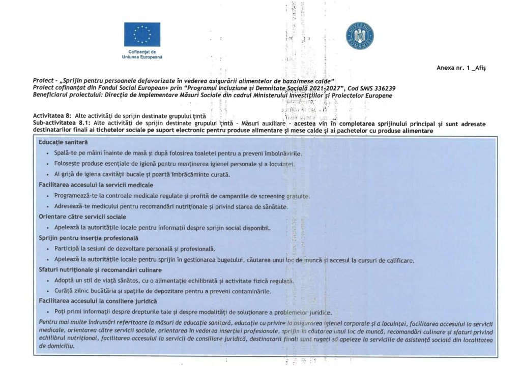 Sprijin pentru persoanele defavorizate in vederea asigurarii alimentelor de baza/mese calde
